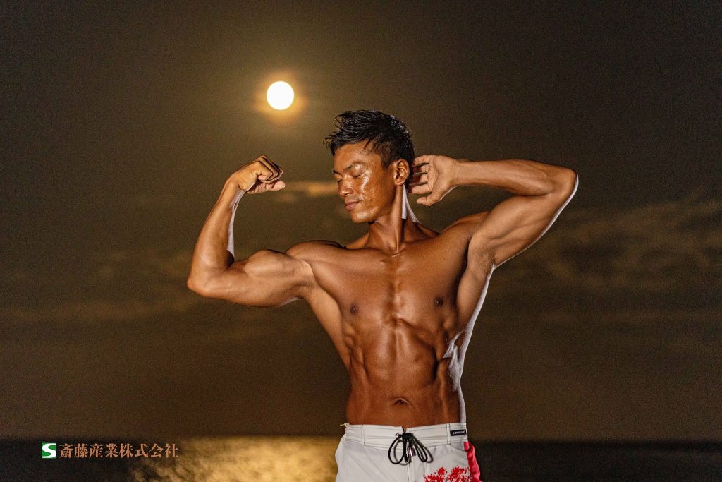 月明かりに照らされて鍛え上げられた筋肉には最高のロケーション。綺麗な肉体美を凄いなーと感心しながら撮影しました。